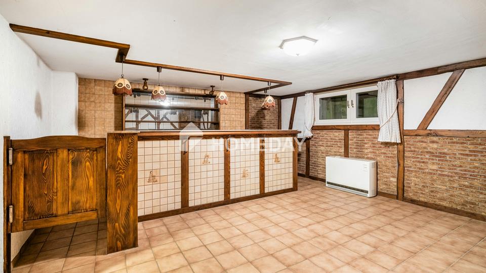 Besonders hervorzuheben ist der großzügige, ca. 35 Quadratmeter große Kellerbereich, der als beheizte Kellerbar genutzt wird und vielfältige Möglichkeiten für Freizeit, Hobby oder gesellige Abende bietet.