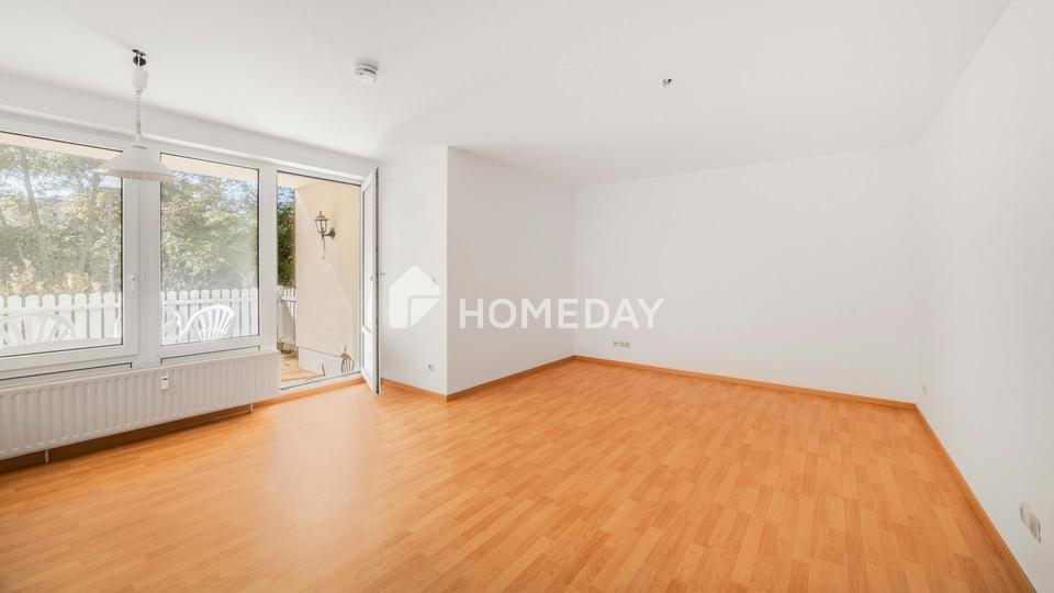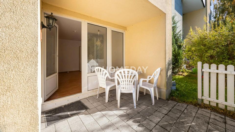 Diese gepflegte Terrassenwohnung aus dem Jahr 1993 bietet auf rund 40 Quadratmetern ein angenehmes Zuhause mit effizienter Raumaufteilung und einem schönen Außenbereich. Der ebenerdige Zugang sorgt für Komfort, während die großzügige Fensterfront viel Tageslicht hereinlässt und einen direkten Blick ins Grüne eröffnet.