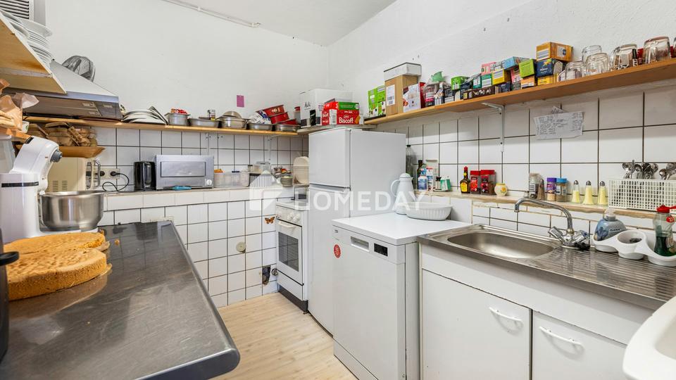 Der Tresen fügt sich harmonisch in den Raum ein, während die Küche mit Edelstahlflächen und klar strukturierten Arbeitsbereichen praktische Abläufe ermöglicht. Das Café wird inklusive des vorhandenen Inventars, unter anderem Theke, Bestuhlung und Tische, übergeben. Dieses ist im Kaufpreis enthalten und ermöglicht einen unkomplizierten, sofortigen Start ohne zusätzliche Investitionen.