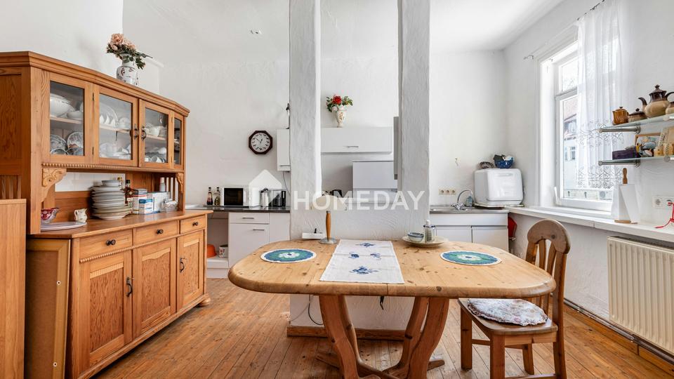 Ausstattung: Willkommen in einem besonderen Fachwerkhaus von 1873, das unter Denkmalschutz steht und historischen Charme mit moderner Nutzung verbindet. Ob für Wohnen und Arbeiten, als stilvolles Investment oder für ein gastronomisches Herzensproj…