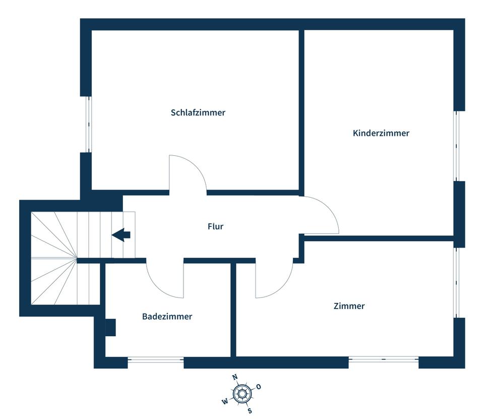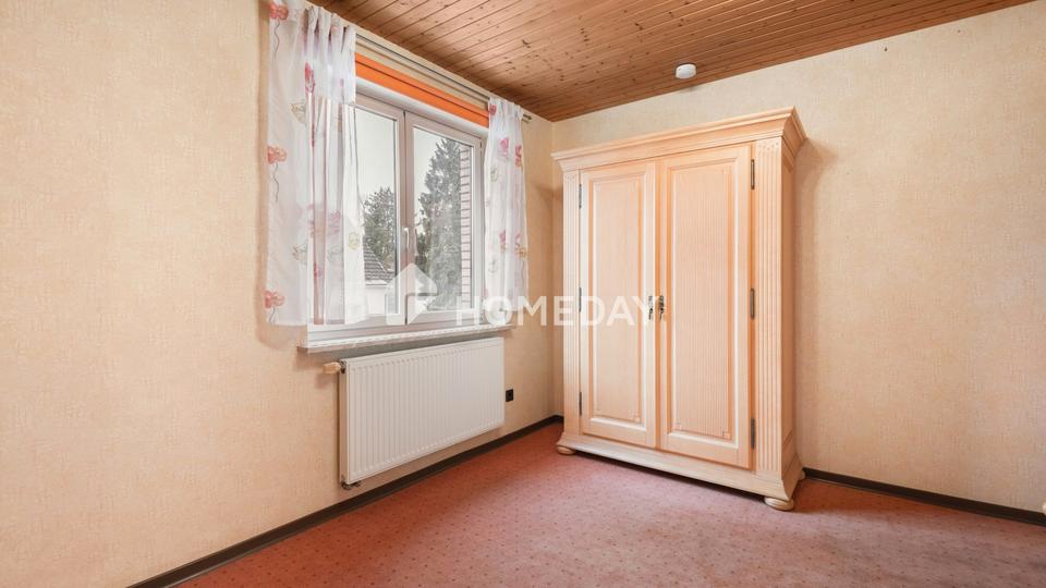 Im Obergeschoss stehen mehrere gut proportionierte Zimmer zur Verfügung, die sich flexibel als Schlaf-, Kinder-, Arbeits- oder Gästezimmer nutzen lassen. Große Fenster sorgen auch hier für eine helle und freundliche Atmosphäre. Das Tageslichtbad ist klassisch gestaltet und mit einer Badewanne ausgestattet – ein Ort für entspannte Momente nach einem langen Tag.