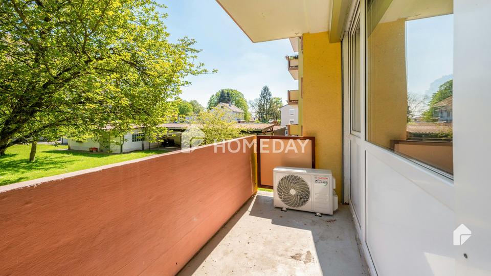 Der überdachte Balkon bietet zusätzlichen Wohnraum im Freien und zu gemütlichen Stunden im Freien einlädt.
