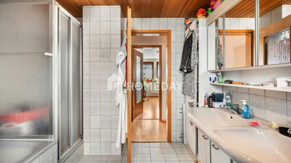 • Badezimmer mit Wanne, Dusche & Fenster, Gäste-WC