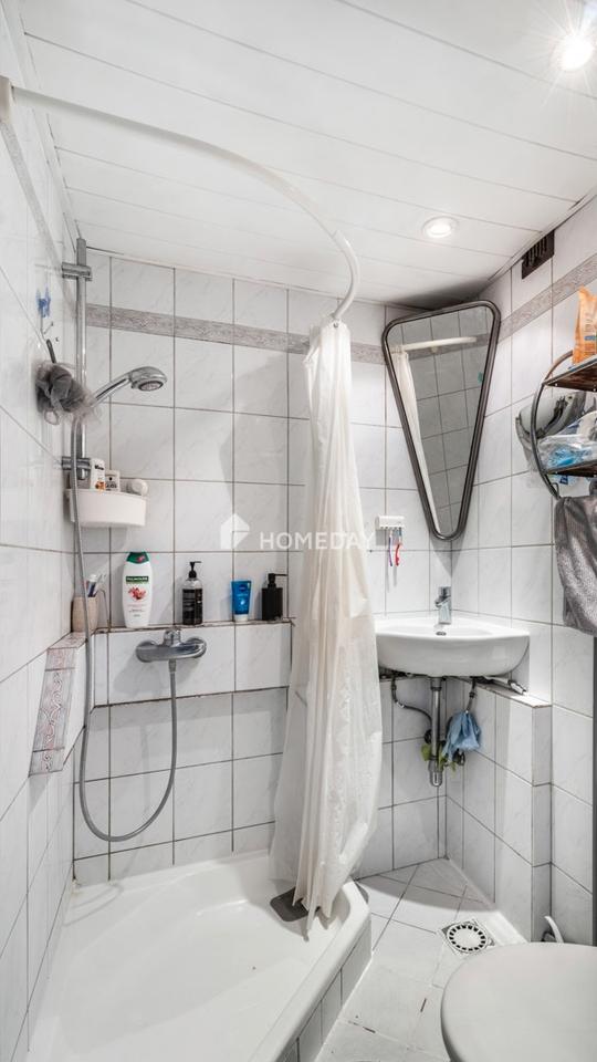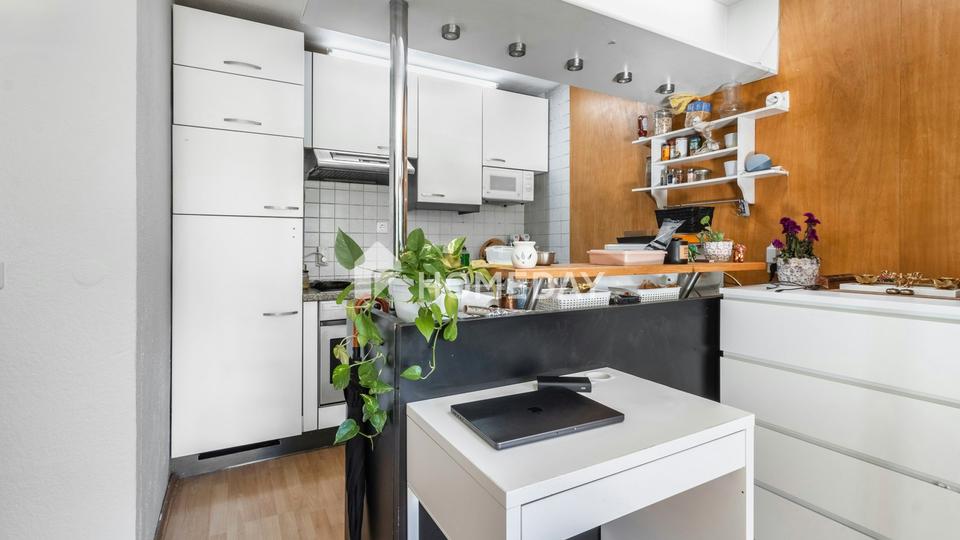 Das Schlafzimmer befindet sich angrenzend am Wohnzimmer und bietet ausreichend Platz für ein großes Bett sowie Stauraum. Die separate Küche fügt sich harmonisch in das Wohnkonzept ein und ermöglicht eine klare Trennung von Wohn- und Kochbereich. Das Badezimmer präsentiert sich, wie die gesamte Wohnung, in einem gepflegten Zustand und ist mit einer Dusche ausgestattet.