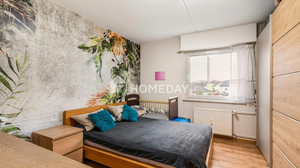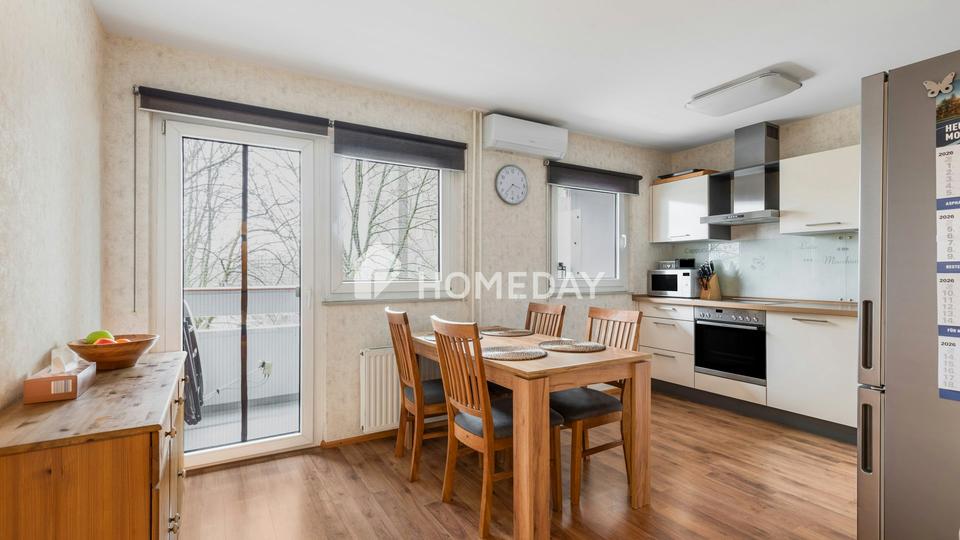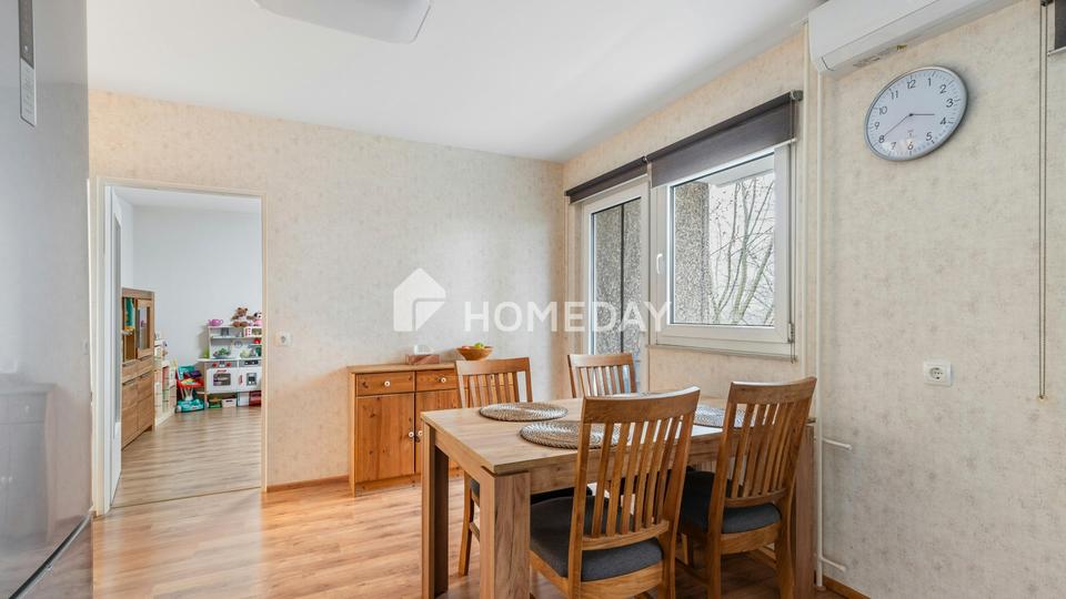 Der durchdachte Grundriss sorgt für eine angenehme Wohnatmosphäre. Vom einladenden Flur aus sind nahezu alle Räume direkt zugänglich. Das Wohnzimmer bildet dabei den zentralen Lebensmittelpunkt. Von hier aus erreichen Sie den überdachten, nach Osten ausgerichteten Balkon, auf dem Sie die Morgensonne genießen und den Tag entspannt ausklingen lassen können.
