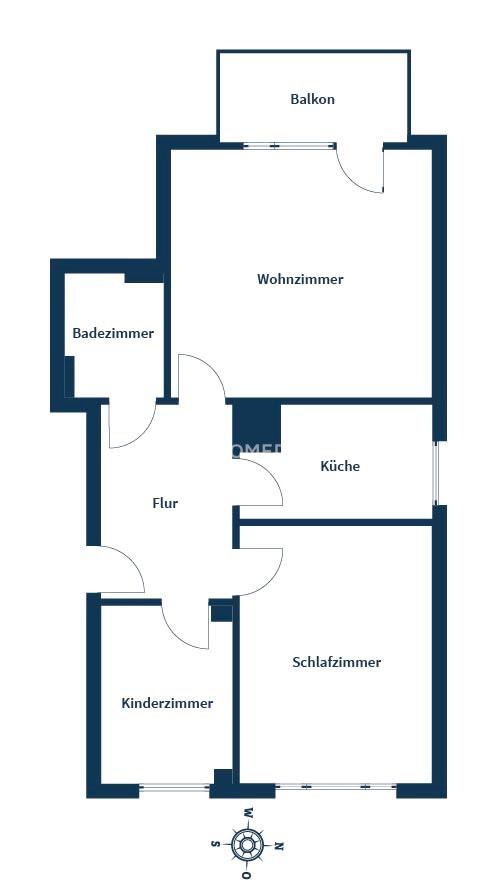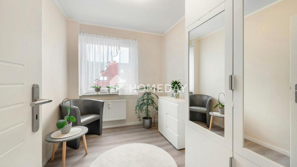 Der durchdachte Grundriss bietet drei gut geschnittene Zimmer, die flexibel als Schlaf-, Arbeits- oder Kinderzimmer genutzt werden können. Das Wohnzimmer ist der zentrale Treffpunkt der Wohnung – hell, einladend und mit direktem Zugang zum überdachten Balkon, der zum Entspannen im Freien einlädt.
