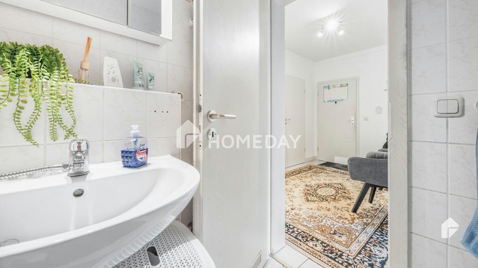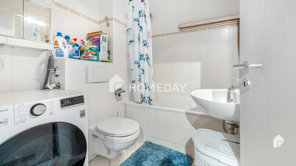 Das gut erhaltene Wannenbad befindet sich ebenfalls in einem gepflegten Zustand.