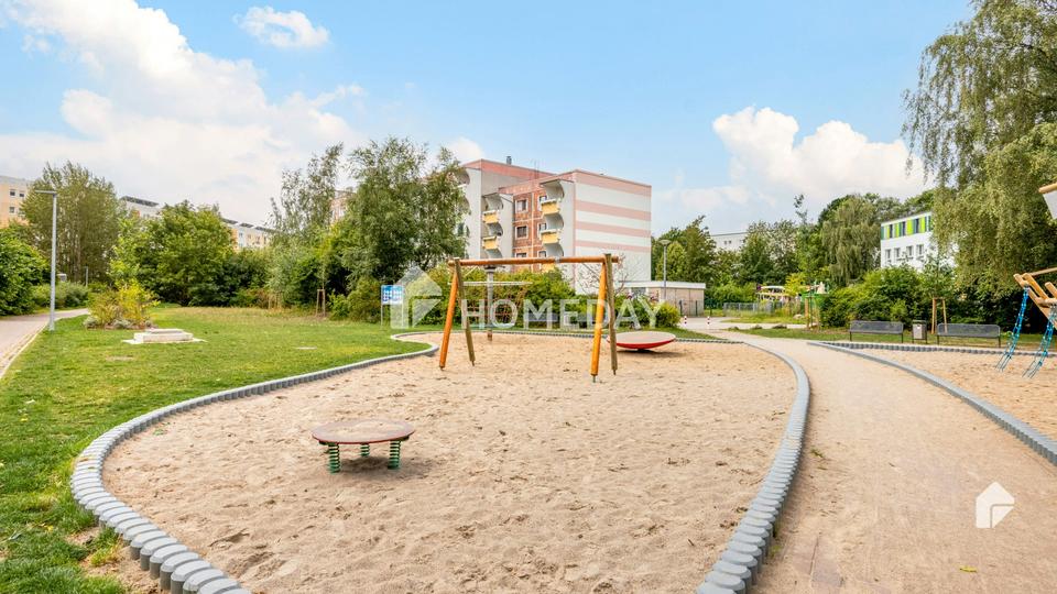 Ihre neue Wohnung befindet sich im Stadtteil Dierkow-Neu. Dieser Stadtteil zeichnet sich durch eine ruhige, grüne Umgebung aus, die besonders für Familien attraktiv ist. Die Wohngegend ist geprägt von Einfamilienhäusern, Reihenhäusern und kleineren Wohnanlagen.
