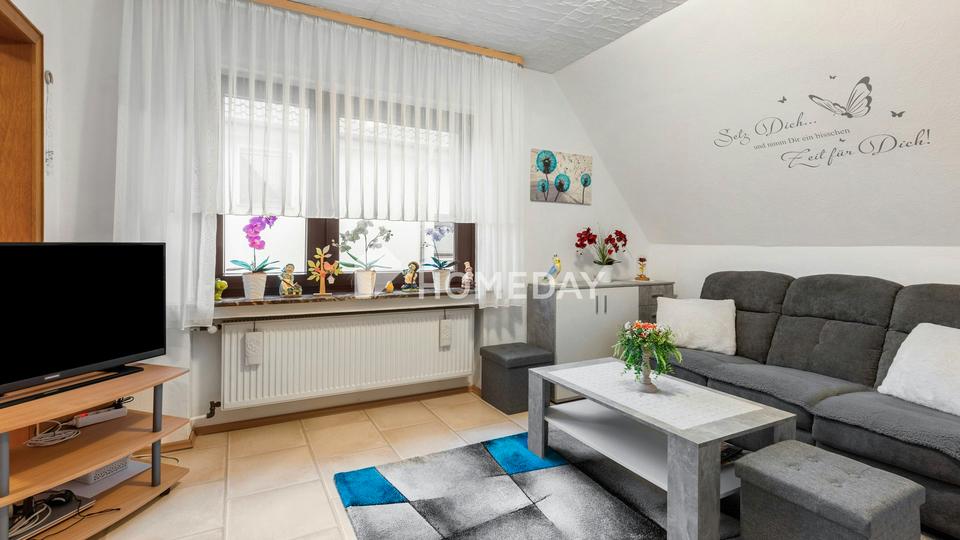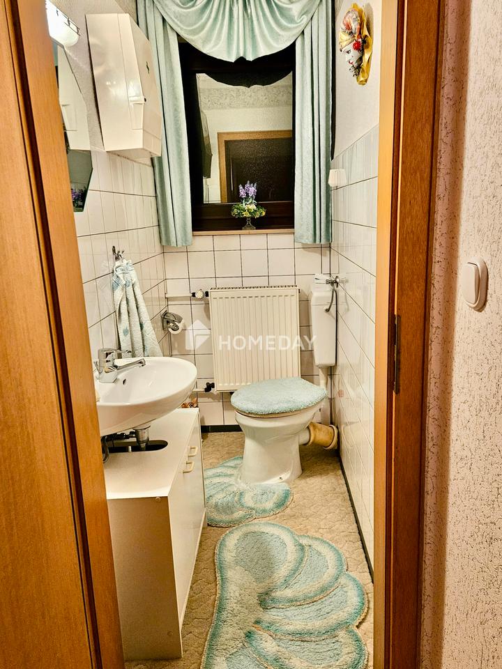Die Immobilie bietet eine Wohnfläche von etwa 151 Quadratmetern, verteilt auf acht Zimmer und zwei Wohneinheiten. Beide Einheiten haben jeweils ein Badezimmer und eine Gästetoilette. Zusätzlich gibt es auch einen Partyraum und einen Wintergarten. Diese Aufteilung ermöglicht sowohl die Nutzung durch eine Großfamilie als auch das Wohnen unter einem Dach in mehreren Generationen. Der vollständig ausgebaute Dachboden erweitert zusätzlich die nutzbaren Flächen. Der Vollkeller stellt zusätzliche Nutzflächen zur Verfügung und bietet unter anderem Platz für den 2010 neu eingebauten Ofen.