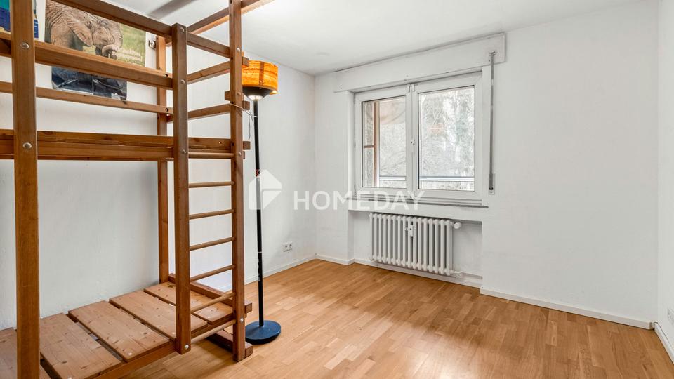 Im Inneren zeigt sich die Wohnung in einem gepflegten, zeitlosen Stil. Das Esszimmer bildet gemeinsam mit dem Wohnzimmer und der offen gestalteten Küche einen funktionalen Mittelpunkt, der viel Spielraum für individuelle Einrichtungsideen lässt. Vom zentralen Flur aus erschließen sich alle weiteren Räume: das großzügige Wohnzimmer mit Zugang zur Loggia, ein helles Kinderzimmer sowie das gut geschnittene Schlafzimmer. Das Tageslichtbad befindet sich in einem sehr ordentlichen Zustand und ist mit einer Badewanne ausgestattet. Ergänzend steht ein separates Gäste-WC zur Verfügung. Praktisch ist zudem der Abstellraum, der für zusätzliche Ordnung sorgt.