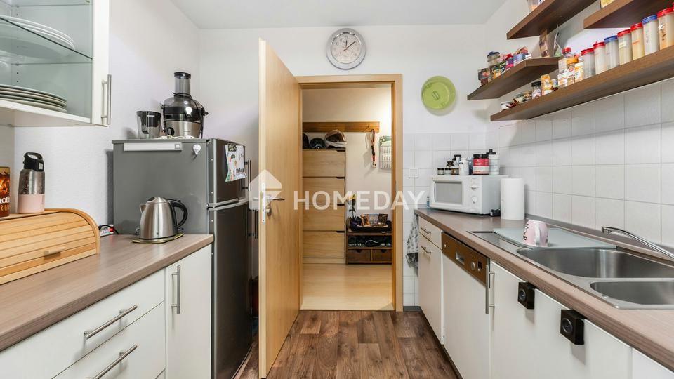 Die Küche ist funktional und zeitgemäß gestaltet. Sie präsentiert sich in einem gepflegten Zustand und bietet ausreichend Platz für den täglichen Bedarf.