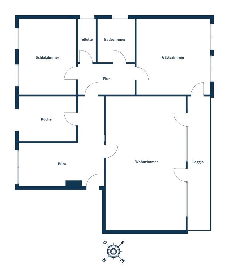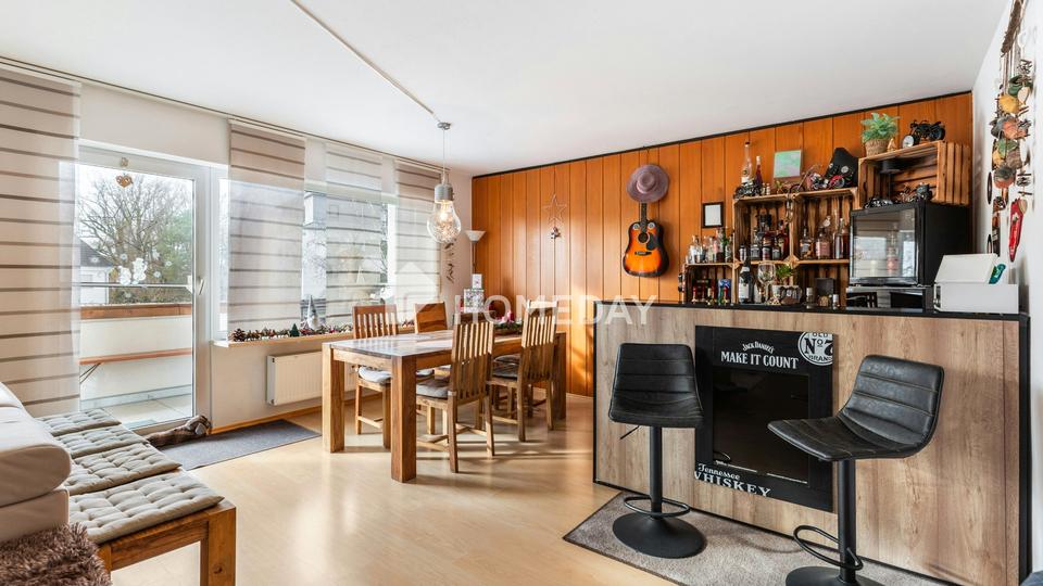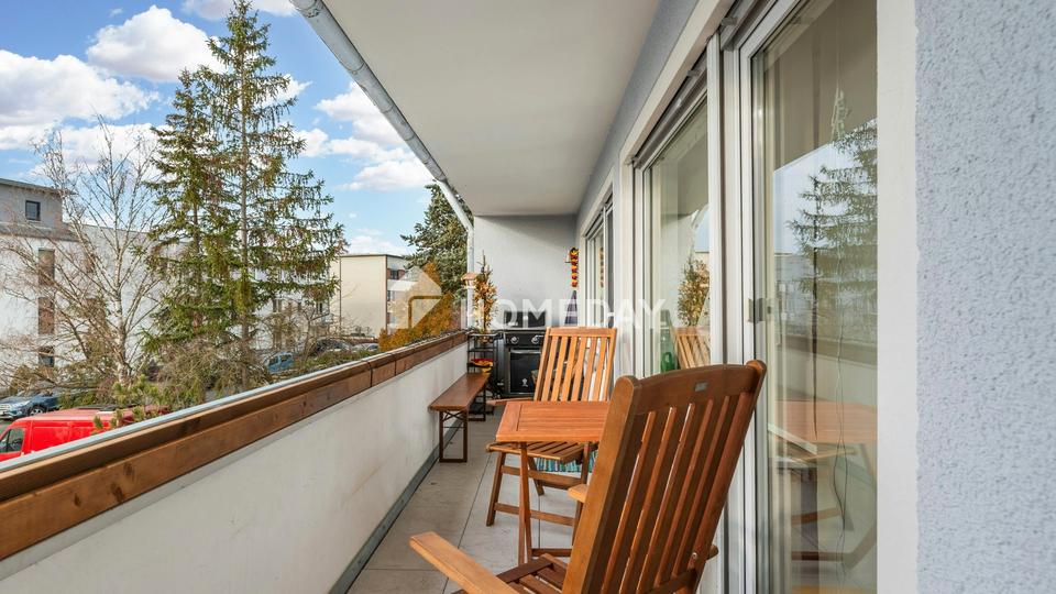Das Wohnzimmer bildet das Herzstück der Wohnung. Großzügig geschnitten und lichtdurchflutet öffnet es sich zur nach Südwesten ausgerichteten Loggia, die sich über die gesamte Länge des Wohnzimmers erstreckt. Hier genießen Sie sonnige Nachmittage und entspannte Abende, ein echter Mehrwert für den Alltag.
