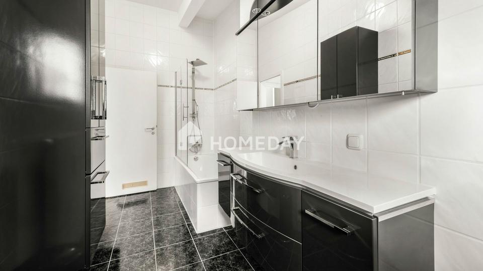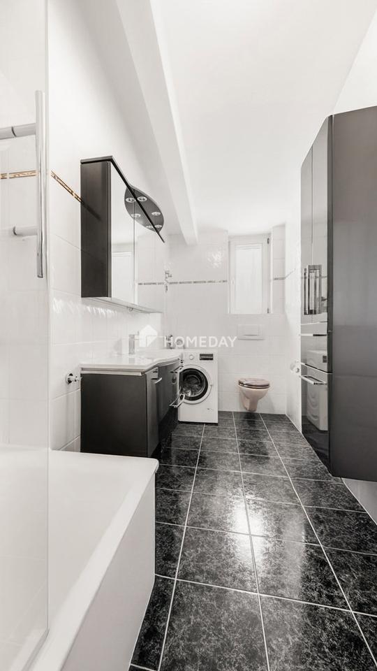 Das Badezimmer ist zeitlos gestaltet und mit Badewanne sowie Dusche ausgestattet. Ergänzt wird das Raumangebot durch eine separate Toilette, einen praktischen Abstellraum innerhalb der Wohnung und einen eigenen Kellerraum, der zusätzliche Abstellfläche schafft.