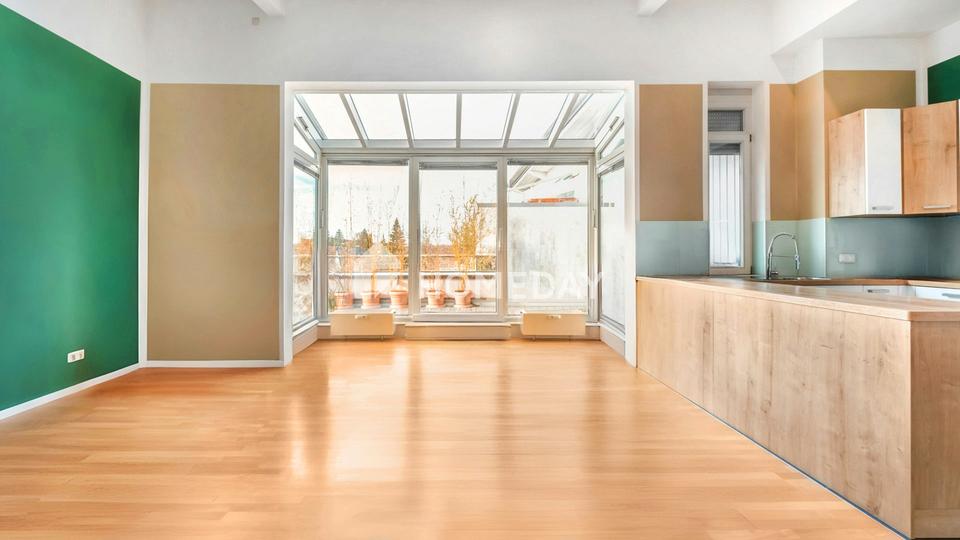 Herzstück der Wohnung ist das großzügige Wohnzimmer mit direktem Zugang zu einem der beiden Balkone. Große Fensterflächen lassen viel Tageslicht herein und eröffnen einen schönen Blick ins Umfeld. Hier entsteht ein harmonischer Wohnbereich, der sowohl Raum für einen gemütlichen Sofabereich als auch für einen Essplatz bietet. Die angrenzende Küche präsentiert sich funktional und modern geschnitten, mit ausreichend Arbeitsfläche und Stauraum. Auch von hier aus ist der Außenbereich bequem erreichbar, was das Wohnen besonders angenehm macht.