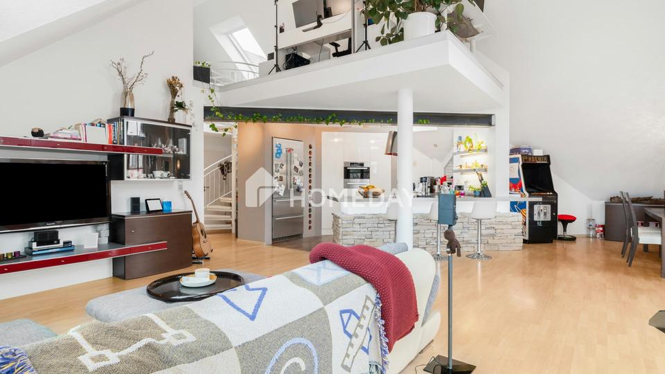 Diese Maisonette-Wohnung erstreckt sich über das 2. Obergeschoss und das Dachgeschoss eines gepflegten Mehrfamilienhauses aus dem Jahr 1992 und bietet mit ca. 171 Quadratmeter Wohnfläche ein Wohngefühl, das man spürt, sobald man eintritt. Die Raumfolge ist offen, klar strukturiert und zugleich überraschend großzügig.