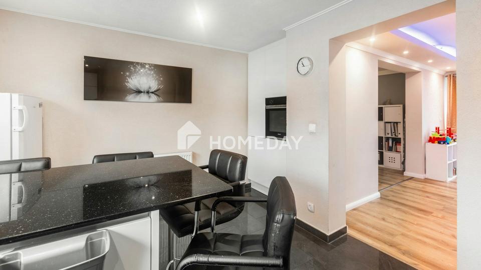 Mit einer Wohnfläche von ca. 136 Quadratmetern bietet die Wohnung ein durchdachtes Raumkonzept mit viel Platz und Licht. Die moderne Einbauküche aus dem Jahr 2021 überzeugt mit hochwertigen Geräten und einem ansprechenden Design. Das helle Tageslichtbad wurde ebenfalls 2021 erneuert und verfügt über eine bodentiefe Dusche sowie einen praktischen Handtuchwärmer. Ein separates Gäste-WC ist ebenfalle vorhanden.