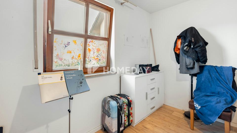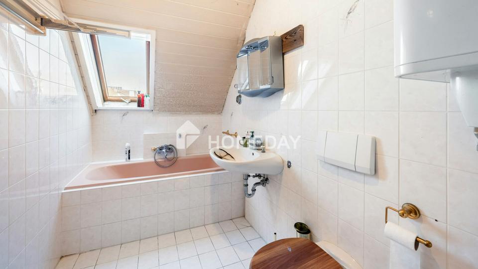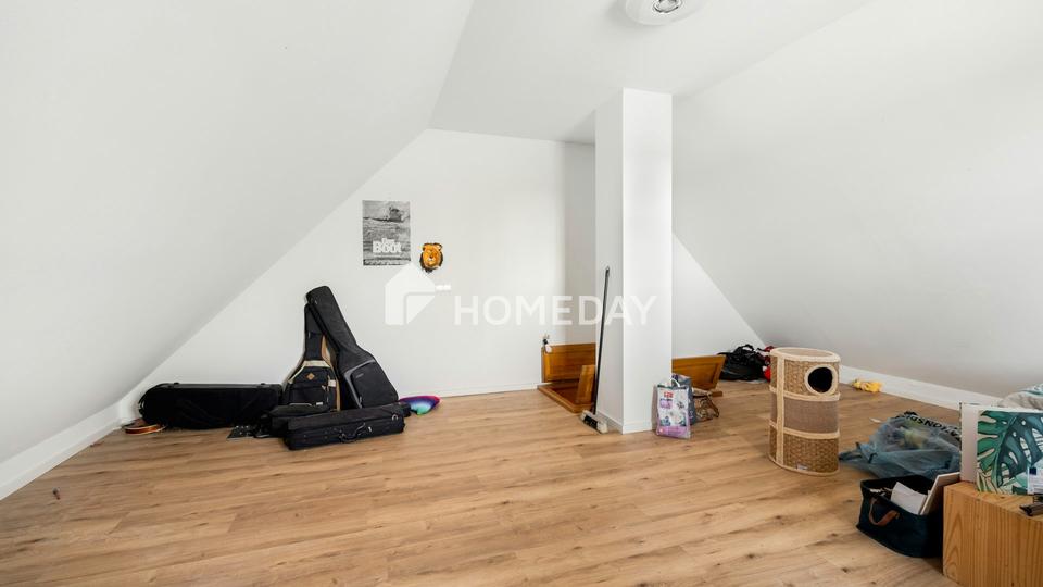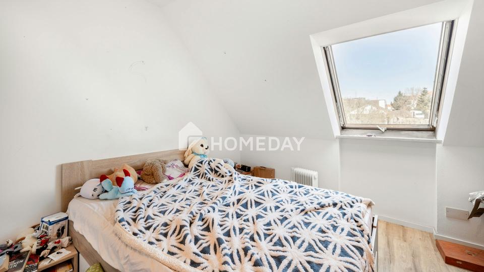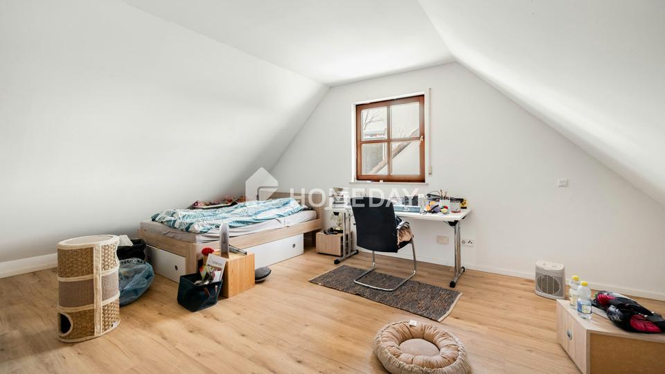 Das Dachgeschoss beherbergt ein zusätzliches Schlafzimmer und bietet damit weitere flexible Nutzungsmöglichkeiten, etwa als Homeoffice oder Hobbyraum.