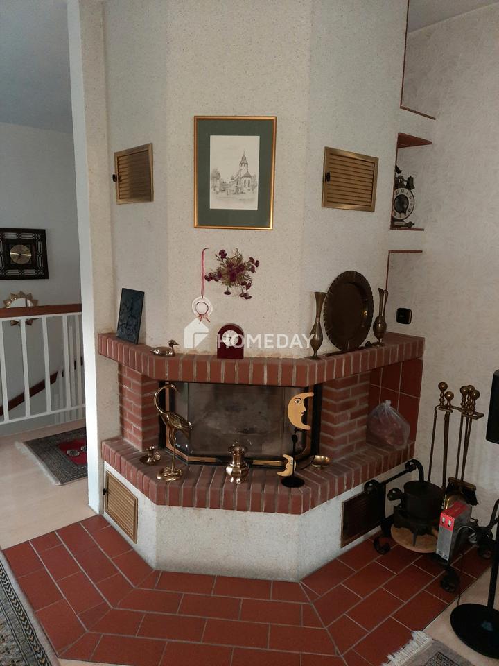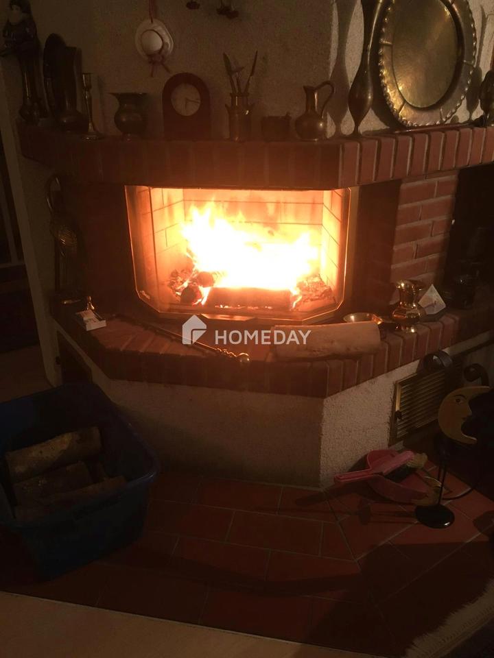 Das angrenzende Zimmer punktet mit einem stilvollen Heizkamin, der mit seinen hochwertigen Schamottsteinen für wohlige Wärme und eine gemütliche Atmosphäre sorgt.