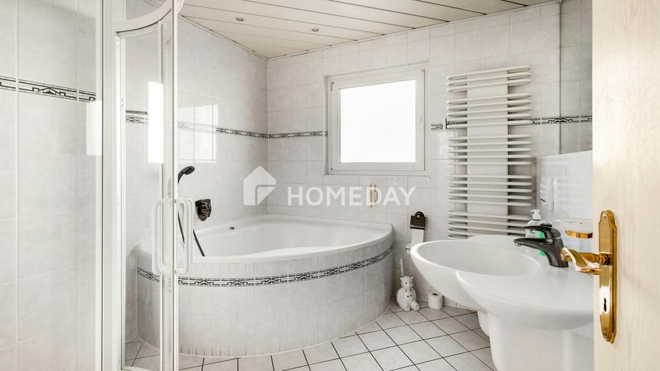 Die neuwertige Einbauküche mit hochwertigen Markengeräten und viel Stauraum wird Hobbyköche begeistern. Ein Tageslichtbad mit Whirlpool, einer Dusche sowie einem Handtuchtrockner bietet Ihnen Komfort und Entspannung auf höchstem Niveau. Ebenfalls im Erdgeschoss befindet sich ein gut geschnittenes Schlafzimmer – vorbereitet für den Einbau einer Fußbodenheizung, perfekt für erholsame Nächte.