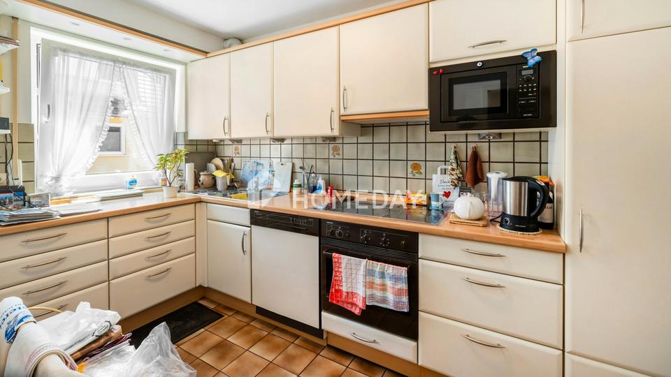 Zusätzlichen Stauraum bietet ein eigener Kellerraum. Zur Wohnung gehört zudem eine fest zugewiesene Garage, die praktisches und sicheres Parken garantiert.