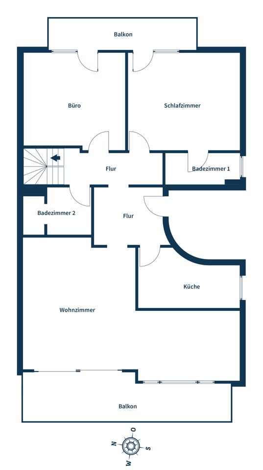 Bereits der kleine, einladende Flur heißt Sie in der ersten Etage willkommen und führt direkt in das große, lichtdurchflutete Wohnzimmer. Bodentiefe Fenster sorgen hier für eine angenehme Wohnatmosphäre und gewähren Zugang zum westlich ausgerichteten Balkon – perfekt für sonnige Nachmittage und den Feierabend im Freien. Angrenzend befindet sich die Küche, die ausreichend Raum für individuelle Gestaltung und moderne Küchentechnik bietet.