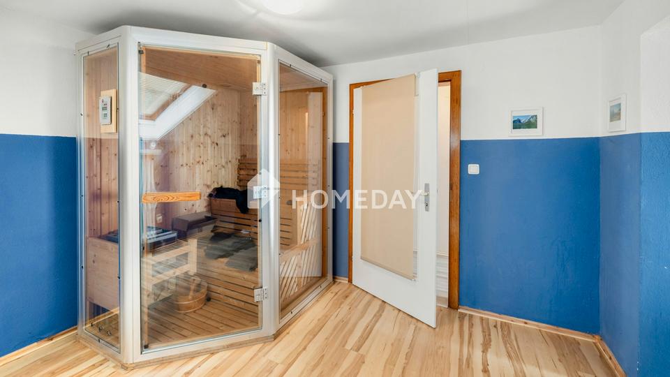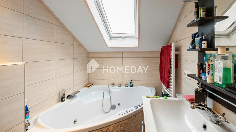 Im Erdgeschoss befindet sich ein 2014 vollständig erneuertes Tageslichtbad mit moderner Dusche. Das Badezimmer im Obergeschoss wurde 2015 komplett modernisiert und ist mit einem komfortablen Eck-Whirlpool ausgestattet. Ein ganz besonderes Plus stellt zudem die im Obergeschoss integrierte Sauna dar. Sie bietet einen exklusiven Rückzugsort für entspannte Auszeiten und verleiht der Immobilie einen spürbar erhöhten Wohlfühl- und Erholungscharakter.