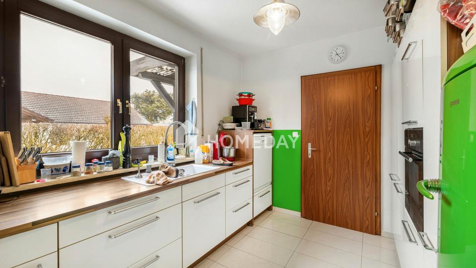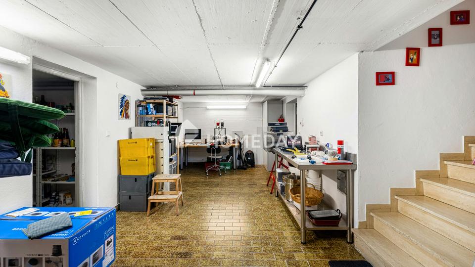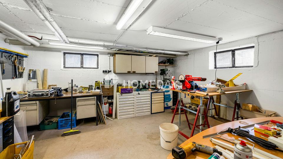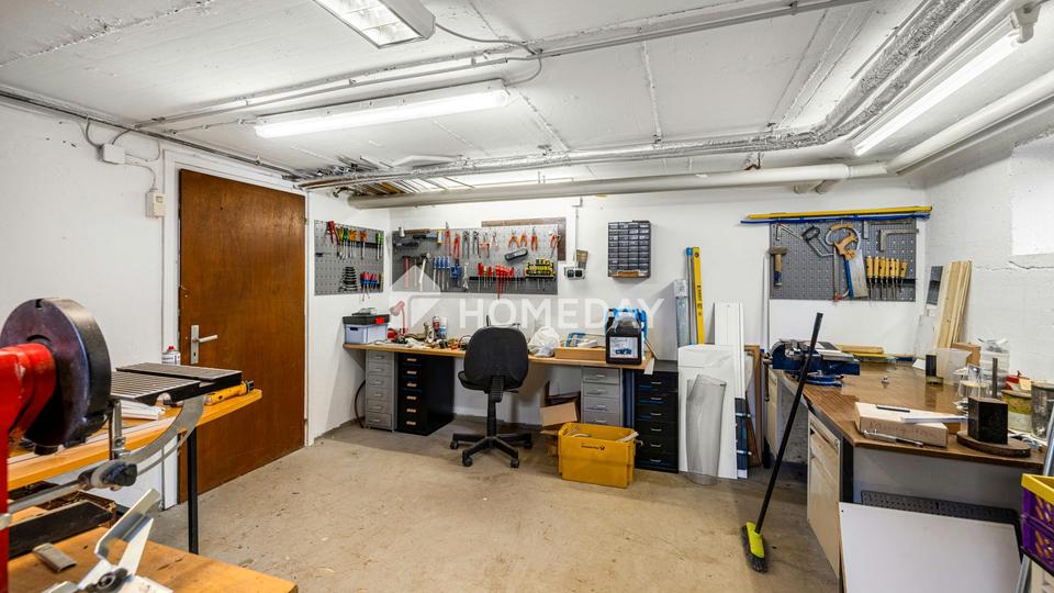 Auch technisch präsentiert sich das Haus gut aufgestellt. Ein Teil der Fenster wurde bereits 2013 erneuert. Die Ölheizung wurde 2018 neu eingebaut und wird durch eine Solarthermieanlage auf dem Dach sinnvoll ergänzt. Der voll unterkellerte Bereich erweitert das Platzangebot zusätzlich und bietet neben einer Waschküche auch einen großzügigen Werkraum – ideal für Hobby, Handwerk oder praktische Aufbewahrung.
