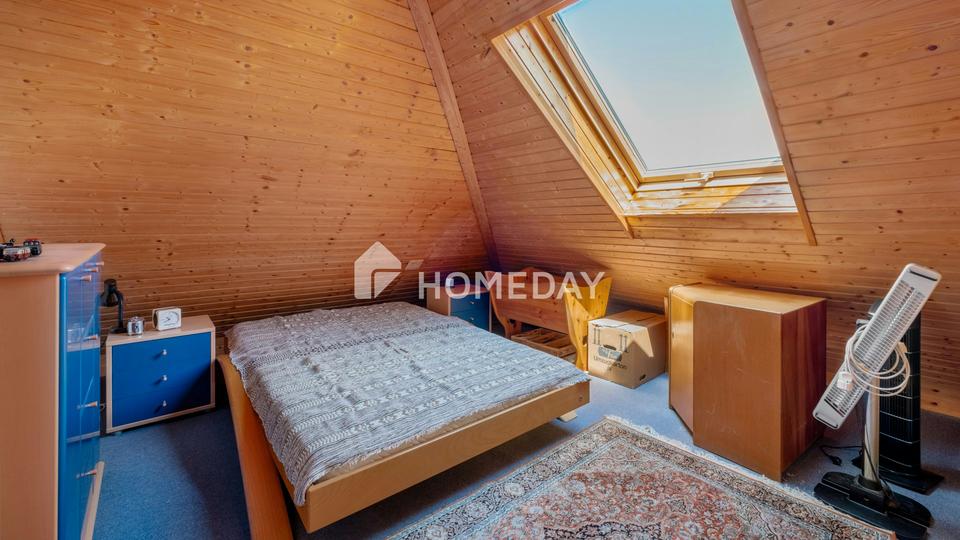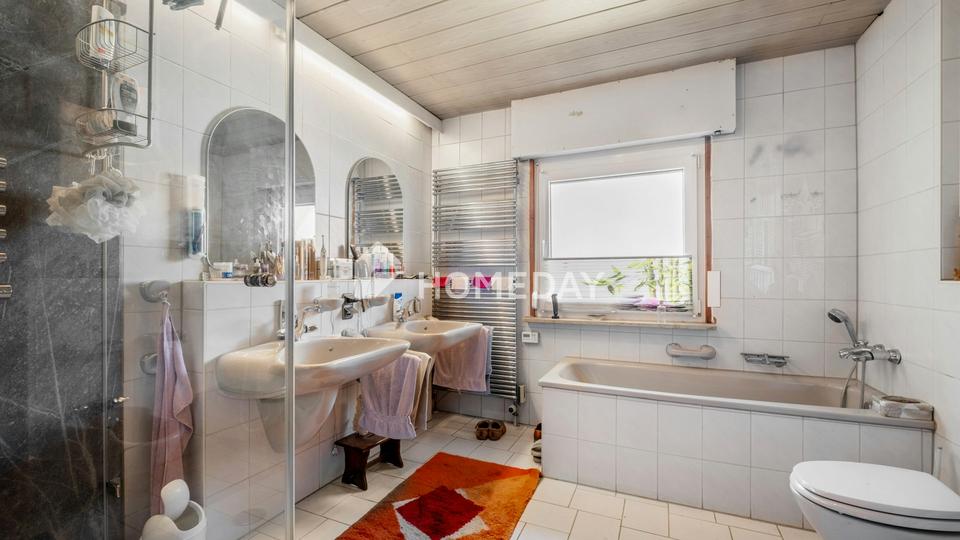 Im ersten Obergeschoss bietet ein weiteres Tageslichtbad mit Dusche zusätzlichen Komfort. Mehrere helle Zimmer – nutzbar als Schlaf-, Kinder- oder Arbeitszimmer – schaffen flexible Nutzungsmöglichkeiten. Auch ein Balkon mit schönem Ausblick ist hier vorhanden.