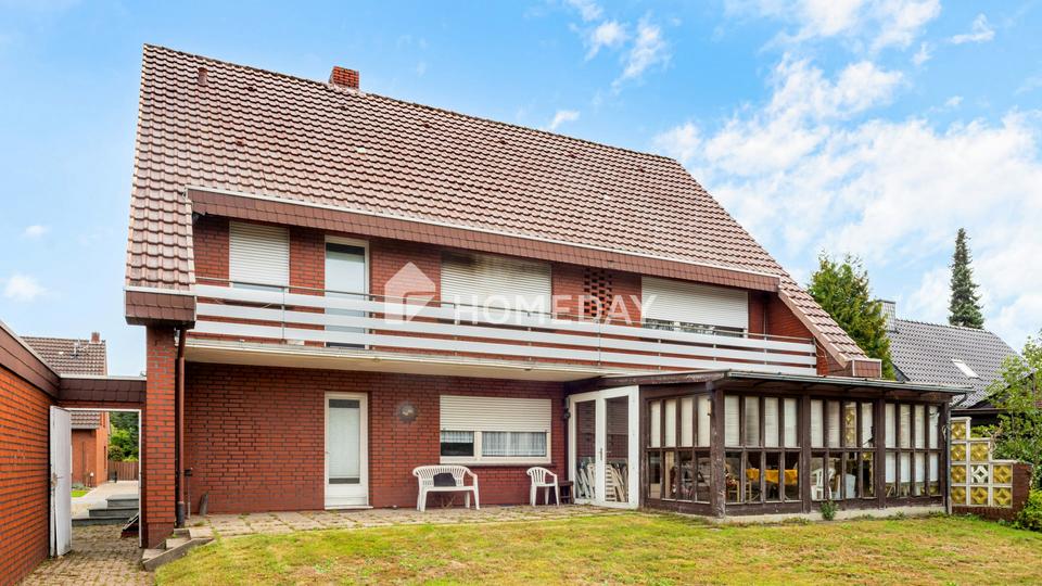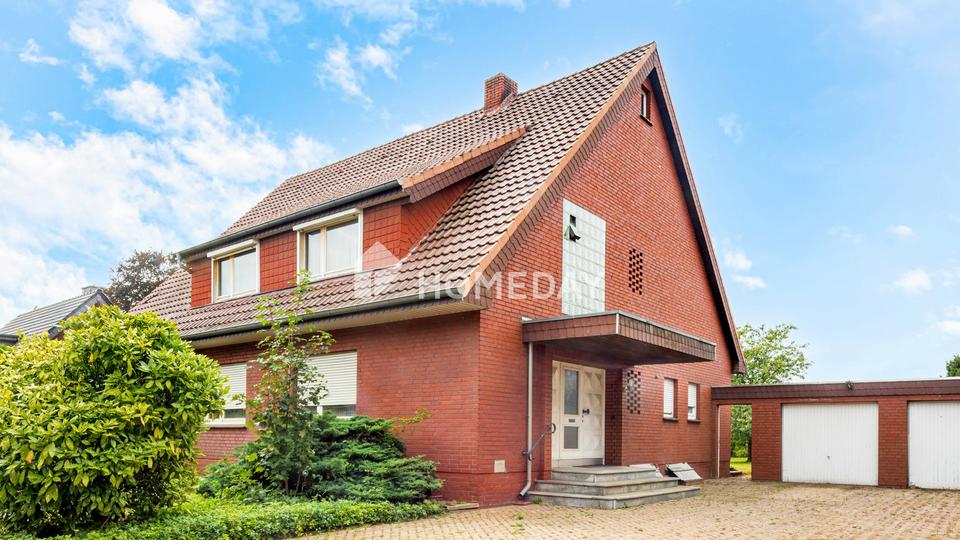 Die Immobilie befindet sich in einer ruhigen Wohngegend am Ortsrand von Nortrup im Landkreis Osnabrück. Das Umfeld ist von Ein- und Zweifamilienhäusern geprägt, wodurch ein harmonisches und familienfreundliches Wohnklima entsteht. Die Straße selbst ist wenig befahren und vermittelt ein angenehmes, ländlich-idyllisches Flair mit viel Grün.