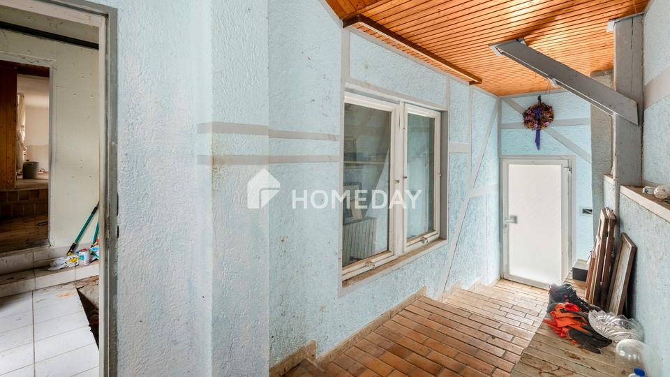 Das Wohnhaus befindet sich in einem stark renovierungs- bis kernsanierungsbedürftigen Zustand. Nahezu alle Gewerke müssen erneuert oder grundlegend überarbeitet werden. Wer jedoch über handwerkliches Know-how, Visionen oder die richtigen Kontakte verfügt, findet hier ein Objekt mit echter Substanz und vielseitigen Möglichkeiten.