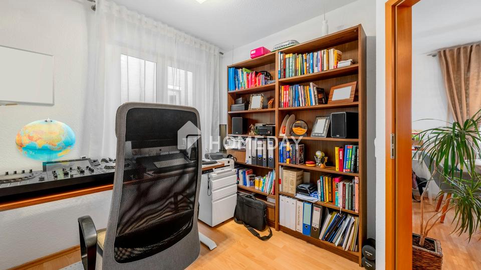 Mit 4,5 Zimmern bietet die Wohnung viele Nutzungsmöglichkeiten: vom Homeoffice über das Kinderzimmer bis hin zum Gästezimmer. Das Bad mit Dusche und Badewanne ist gepflegt und alltagstauglich gestaltet, das separate WC sorgt für zusätzlichen Komfort. Böden aus Parkett, Fliesen und Laminat fügen sich harmonisch ins Gesamtbild ein und unterstreichen den gepflegten Eindruck.