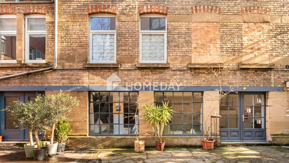 Das rückwärtige Gebäude hat weitere drei Einheiten auf drei Ebenen. Die Flächen werden aktuell sowohl wohnlich als auch wohnähnlich genutzt und eröffnen ein breites Spektrum an Nutzungsmöglichkeiten, etwa für klassische Wohnkonzepte, Atelier- oder Galerieflächen oder eine Kombination aus Wohnen und Arbeiten.