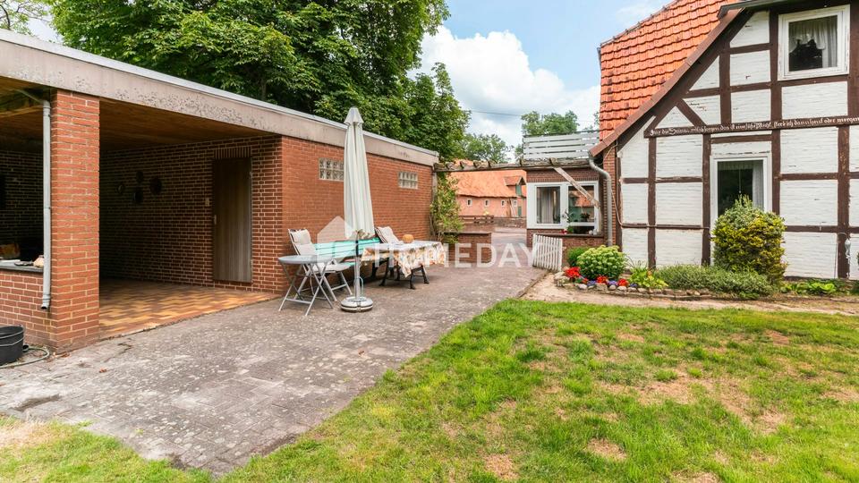 Diese Immobilie befindet sich in ruhiger, ländlicher Lage im Gemeindegebiet von Steyerberg, einer charmanten Ortschaft im Landkreis Nienburg/Weser, Niedersachsen. Umgeben von Wiesen, Feldern und kleinen Waldstücken liegt das Anwesen in einem weitläufigen Außenbereich mit typischem Dorfbild, geprägt von Einzelhöfen, Reetdachhäusern und großzügigen Grundstücken.