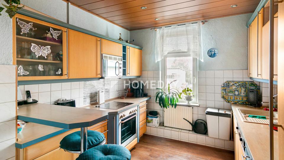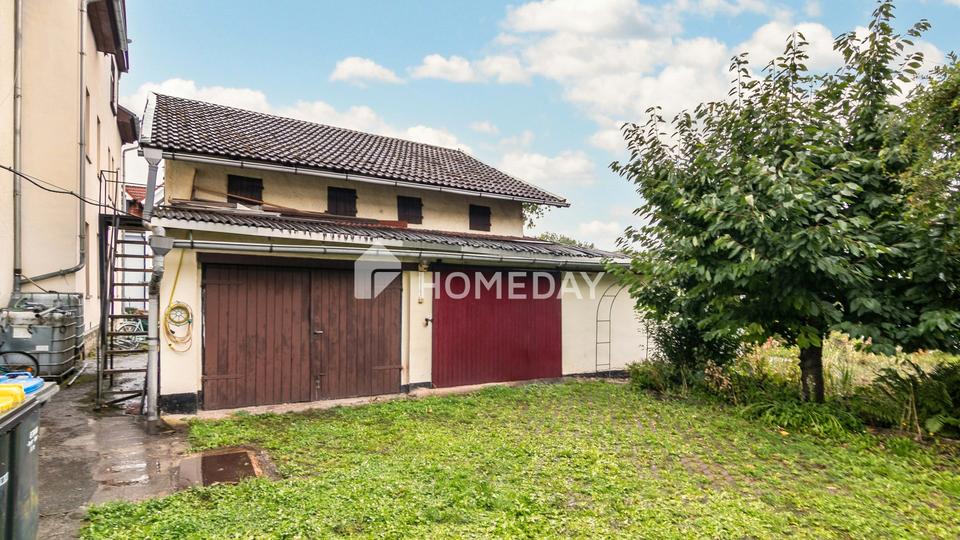 Besonders hervorzuheben sind der schöne Garten sowie ein Balkon, die zusätzlichen Wohnkomfort und Freiraum im Außenbereich schaffen. Das Haus ist voll unterkellert und bietet somit weitere Abstell- und Nutzflächen. Ergänzt wird das Angebot durch ein Nebengebäude mit zwei Garagen, das praktische Stell- und Lagermöglichkeiten bereithält.