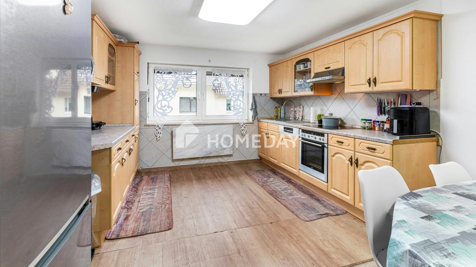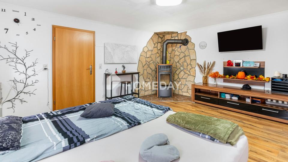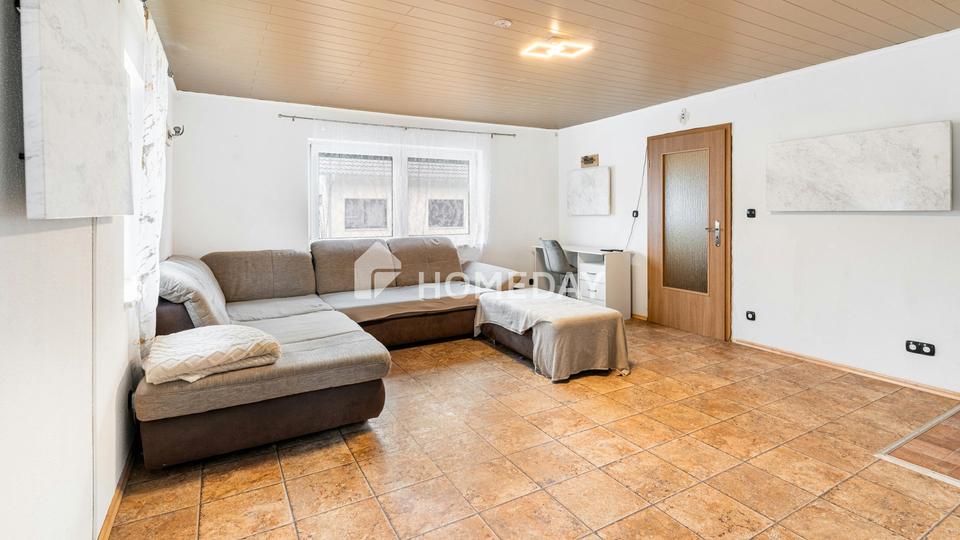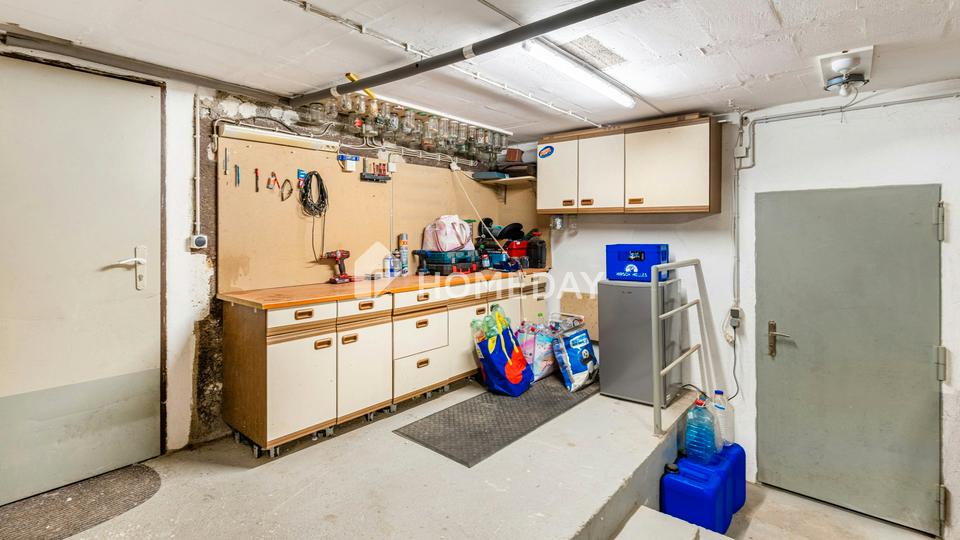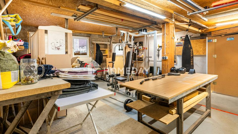 Zudem verfügt die Immobilie über zwei Garagen sowie mindestens einen Außenstellplatz. Über der Garage sorgt die Scheune für zusätzliche Gestaltungsmöglichkeiten. Eine Werkstatt bietet darüber hinaus vielfältiges Ausbaupotenzial, etwa für Hobbyräume, Lagerflächen oder zukünftigen Wohnraum.