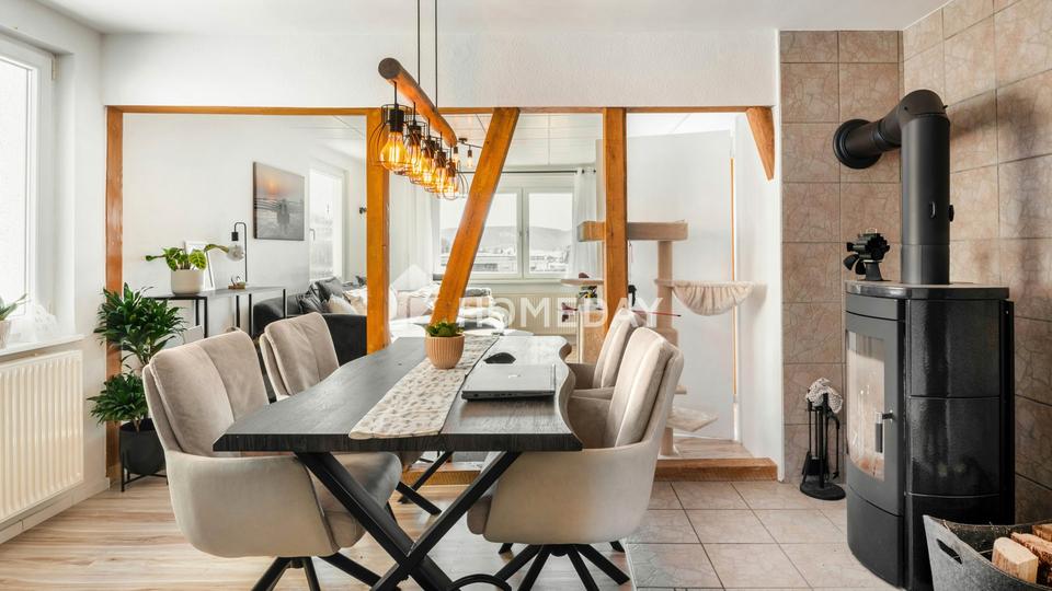 Das Haus erstreckt sich über zwei Vollgeschosse und überzeugt durch eine funktionale Raumaufteilung. Helle Wohnräume, überwiegend ausgestattet mit Laminat- und Fliesenböden, schaffen eine freundliche Wohnatmosphäre. Ein Balkon mit separatem Zugang erweitert den Wohnbereich ins Freie und bietet zusätzlichen Rückzugsraum.