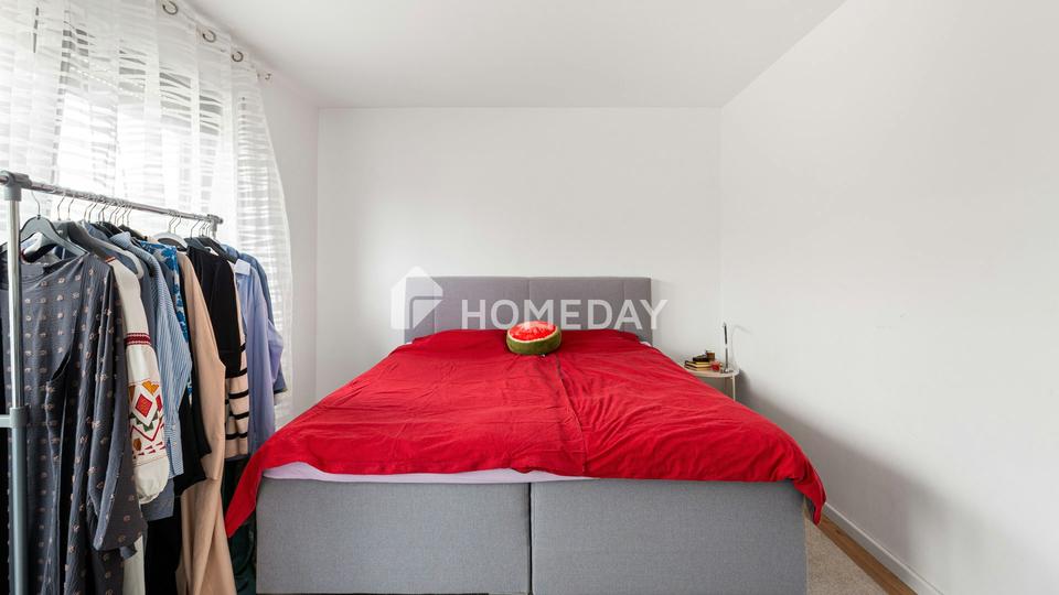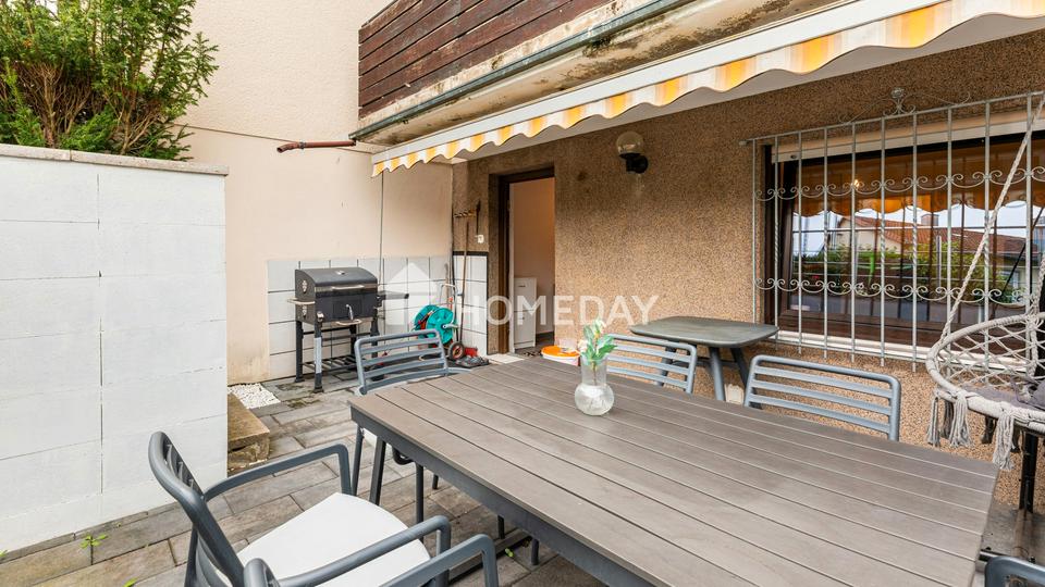 Das durchdachte Raumkonzept zeigt sich besonders im Kellergeschoss. Neben einer praktischen Waschküche und einem Werkraum finden sich hier ein zusätzliches Badezimmer sowie ein weiteres Schlafzimmer – perfekt für Gäste, Teenager oder als eigener Rückzugsbereich. Von hier aus gelangt man direkt auf die sonnige Terrasse, die zusammen mit dem nach Süden ausgerichteten Balkon wunderbare Plätze für gemeinsame Mahlzeiten, entspannte Sommerabende oder spielende Kinder im Garten bietet.