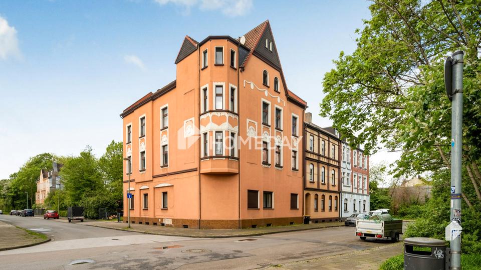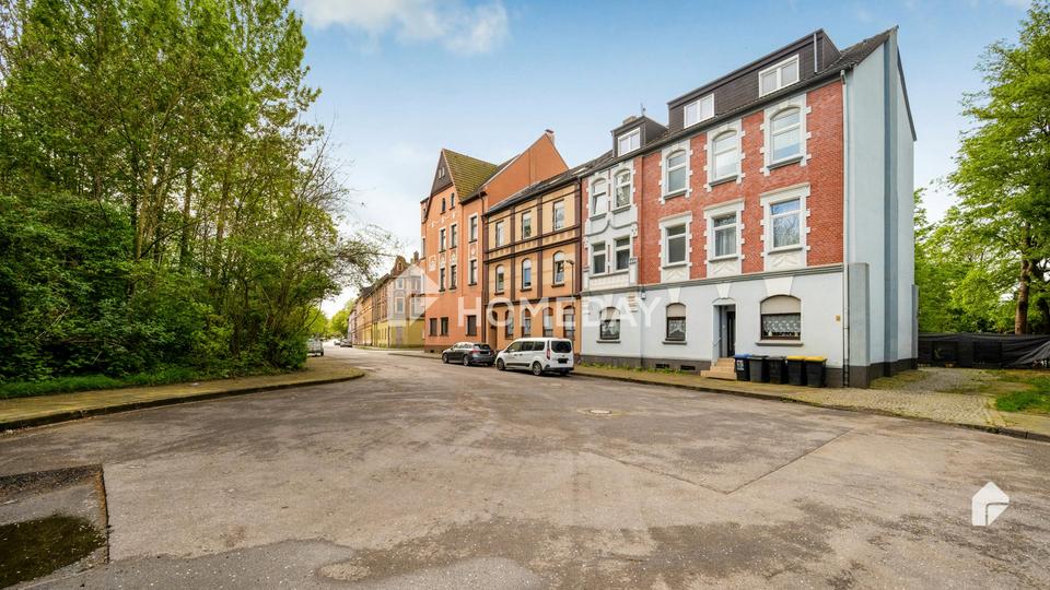 Das Mehrfamilienhaus befindet sich in Herne-Wanne, einer Stadt im Ruhrgebiet in Nordrhein-Westfalen. Bei der Straße handelt es sich um eine ruhige Wohnstraße, die von Bäumen gesäumt ist und eine angenehme Atmosphäre bietet.