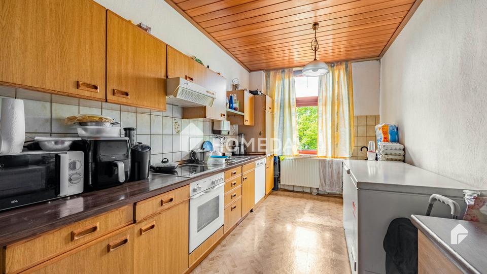 Die Immobilie hat eine Größe von ca. 450 Quadratmetern Wohnfläche, die sich auf 20 Zimmer und sechs Wohneinheiten verteilt. Im Vollkeller befinden sich Kellerabteile für jede Mietpartei. Aufgrund der Größe eignet sich das Haus hervorragend für Investoren und Kapitalanleger. Im Inneren verfügt das Mehrfamilienhaus über normale Ausstattung.