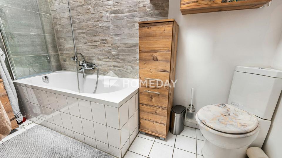 Die Gaszentralheizung stammt aus dem Jahr 1997. Die Warmwasseraufbereitung erfolgt im Haupthaus über Durchlauferhitzer, im Anbau über Boiler. Die Trink- und Abwasserleitungen wurden im Jahr 2019 erneuert. Ergänzend stehen eine Waschküche, ein Kellerbereich sowie eine Doppelgarage und weitere Stellplätze für Bewohner zur Verfügung.