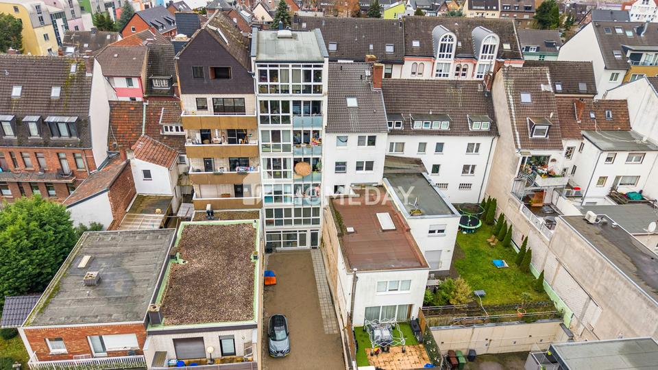 Ein vielfältiges Angebot an Geschäften, Gastronomie, Dienstleistungen und kulturellen Einrichtungen prägt die urbane Umgebung. Die Bevölkerungsstruktur in dieser Lage sorgt für eine verlässliche Nachfrage nach Mietwohnraum. Dieser Bereich zählt zu den nachgefragten Quartieren, da Mieter hier ein gut erreichbares und zugleich belebtes Umfeld finden.