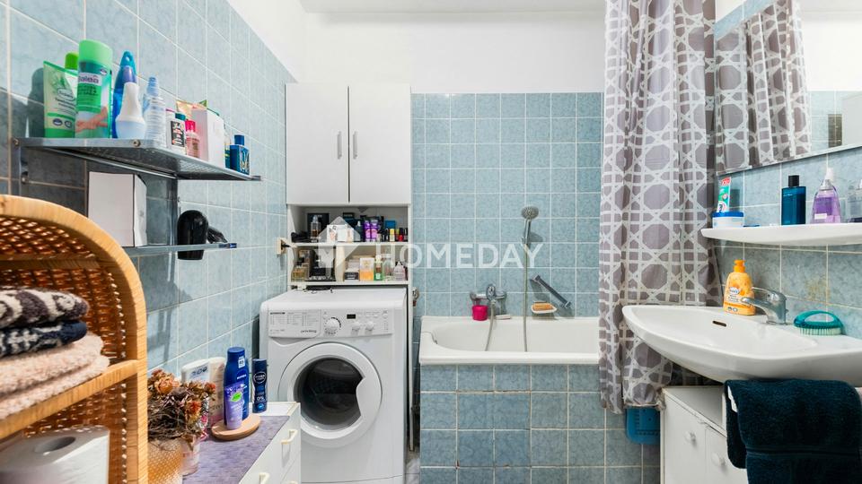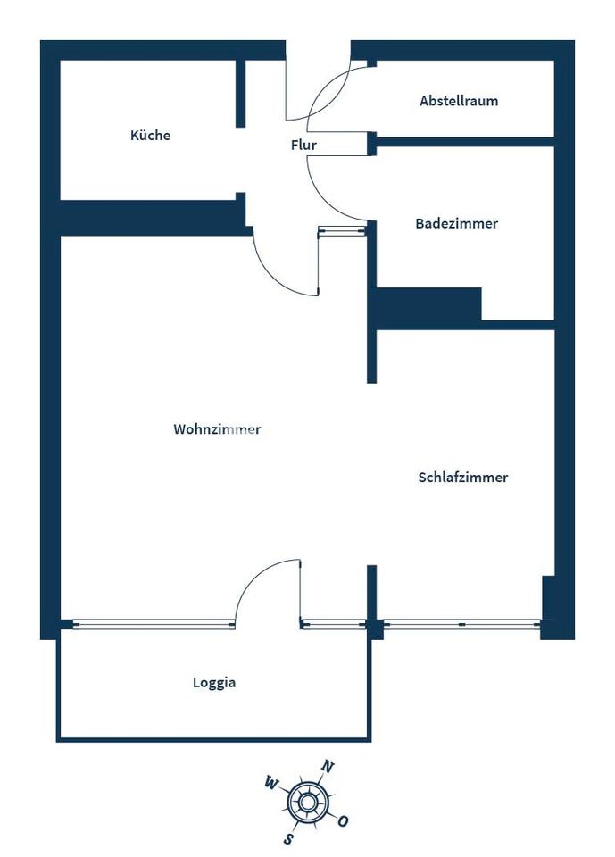 Die Küche liegt separat am Flur, das Bad bietet eine Badewanne. Ein Abstellraum schafft Ordnung für Alltagsdinge. Der Grundriss erlaubt eine gut zonierte Schlaflösung im Wohnraum oder eine spätere Trennung, wenn Sie Rückzug wünschen.