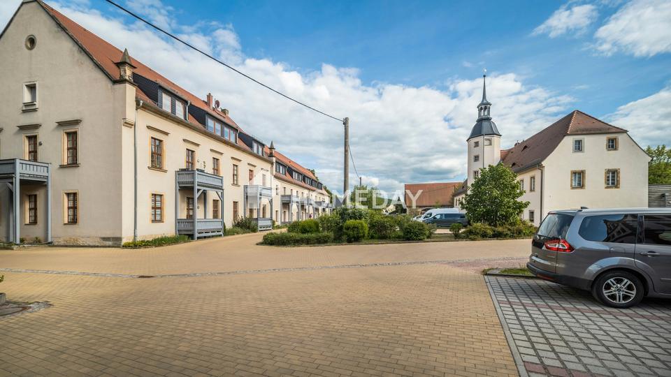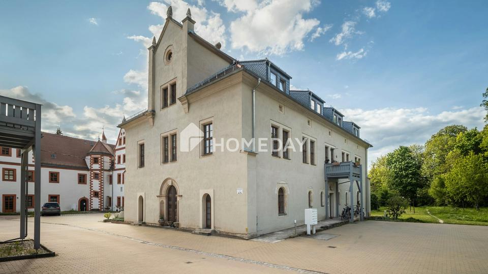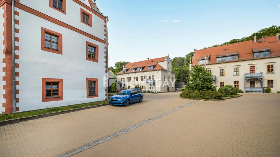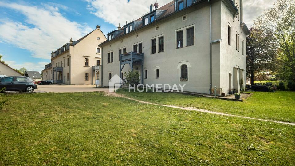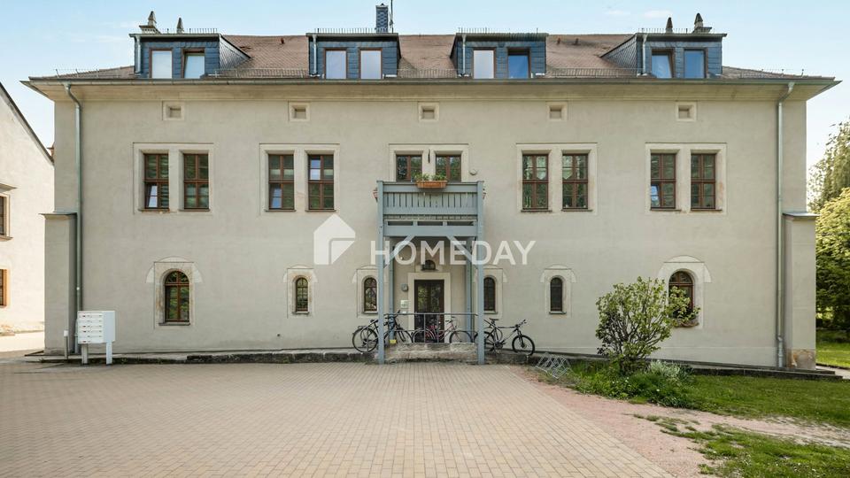 Das denkmalgeschützte Gebäude ist Teil des ehemaligen Schloss- und Stiftsguts Lungkwitz. Die historische Fassade, die charakteristischen Rundbogenfenster und der weitläufige Innenhof verleihen dem Haus ein unverwechselbares Ambiente, das Tradition und Wohnkomfort harmonisch vereint. Die Wohnanlage wird zuverlässig durch eine engagierte Hausverwaltung sowie einen Hausmeisterservice betreut.