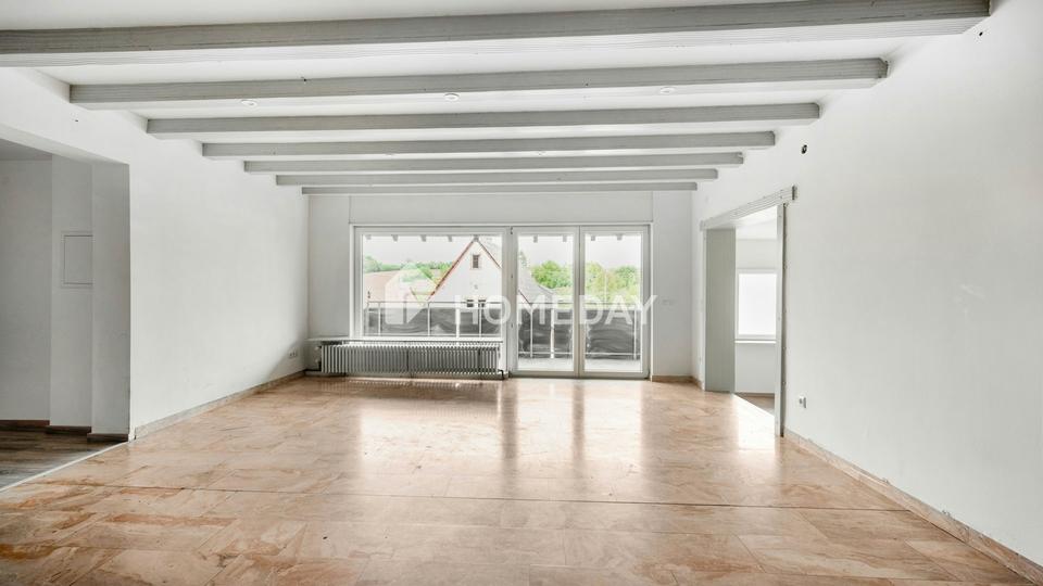 Beim Betreten der Wohnung spüren Sie sofort, dass sie mehr als nur vier Wände bietet. Ein Eingangsflur heißt Sie herzlich willkommen, bevor der Rundgang Sie in das lichtdurchflutete Wohnzimmer führt. Der gemauerte Kamin und die charmanten Deckenbalken sorgen für eine behagliche Atmosphäre, während die überdachte Loggia mit Markise Ihren Wohnraum nach draußen erweitert – perfekt für ein Frühstück im Sonnenschein oder gemütliche Abende mit Freunden.