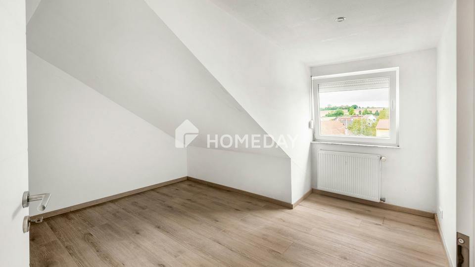 In der oberen Etage erwarten Sie zwei weitere Räume, die flexibel als Kinderzimmer, Büro oder Gästezimmer genutzt werden können. Mit viel Stauraum im Keller und einem privaten Stellplatz wird Komfort großgeschrieben.