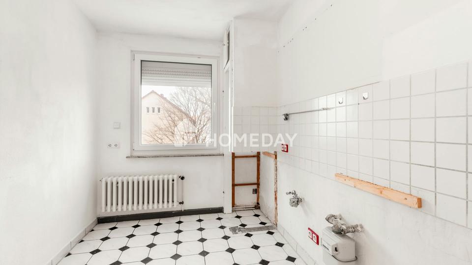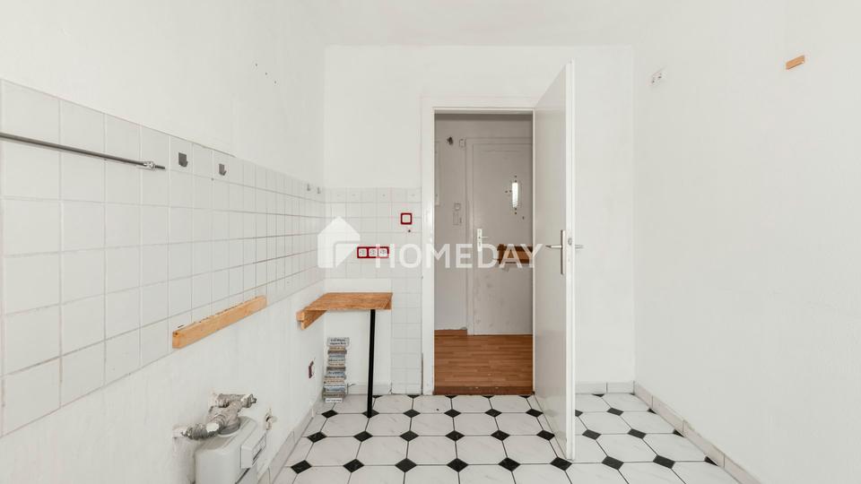 Die separate Küche ist funktional geschnitten und verfügt über gute Stellflächen sowie alle notwendigen Anschlüsse für eine individuell geplante Einbauküche. Hier lässt sich der Alltag praktisch organisieren.