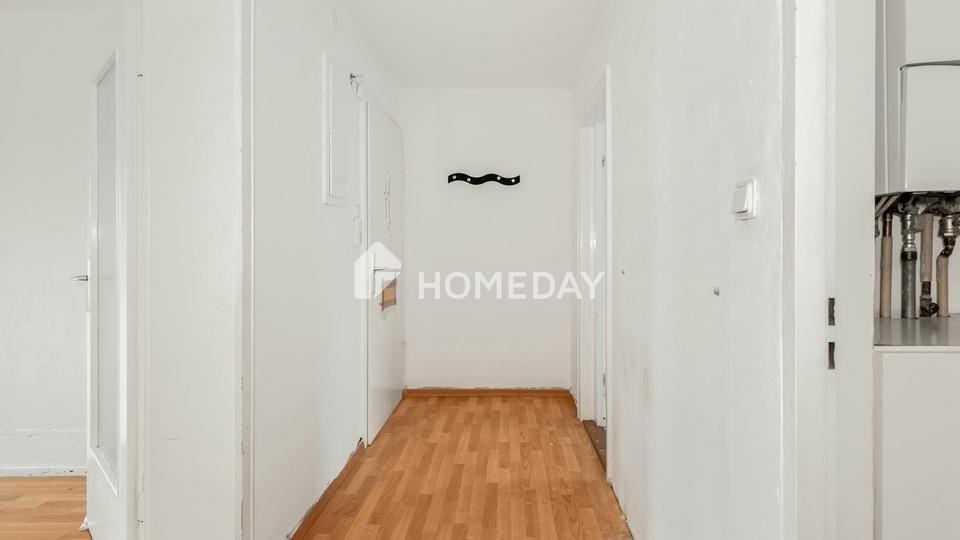 Schon beim Betreten des Hauses vermittelt das gepflegte Treppenhaus einen positiven ersten Eindruck. Oben angekommen, öffnet sich die Wohnung über einen funktional geschnittenen Flur, von dem aus alle Räume bequem erreichbar sind – ein Grundriss, der den Alltag angenehm und unkompliziert gestaltet.
