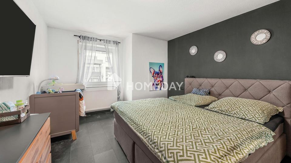 Zwei schön geschnittene Schlafzimmer bieten individuelle Rückzugsorte – sei es als ruhiges Schlafzimmer, komfortables Gästezimmer oder inspirierendes Homeoffice. Das innenliegende Badezimmer ist mit einer Badewanne sowie einer separaten Dusche ausgestattet und verfügt zudem über einen praktischen Waschmaschinenanschluss. Ein zusätzliches Gäste-WC sorgt für zusätzlichen Komfort.