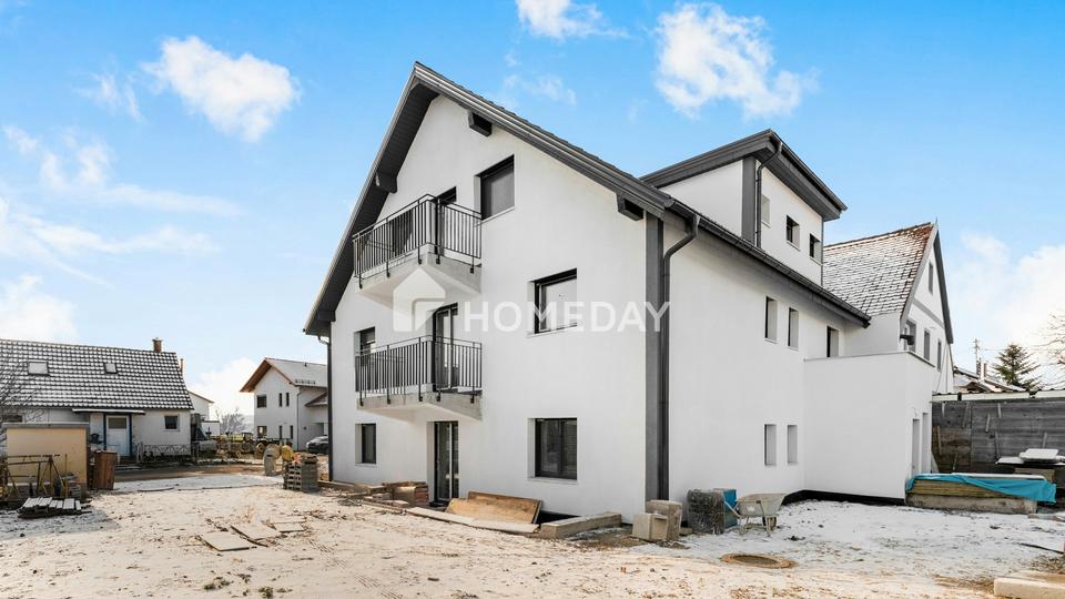 Dieses moderne Mehrfamilienhaus aus dem Jahr 2025 befindet sich auf einem großzügigen Grundstück mit etwa 690 Quadratmetern Fläche. Die Immobilie wurde in massiver Bauweise errichtet und umfasst insgesamt sechs Wohneinheiten mit einer Wohnfläche von rund 270 Quadratmetern. Jede Wohneinheit ist durchdacht geschnitten, wodurch sich ein sehr ansprechender Grundriss ergibt. Alle Wohnungen verfügen über helle, großzügige Räume sowie eigene Außenbereiche in Form von Balkonen oder Terrassen, was die Wohnqualität zusätzlich unterstreicht.