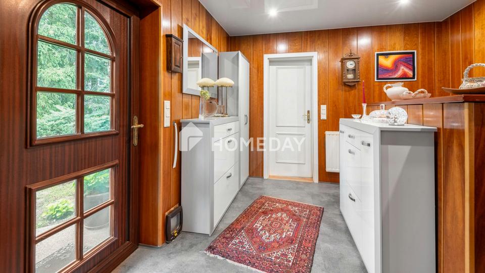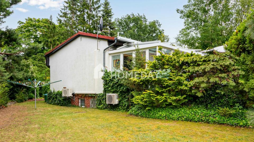 Ausstattung: Dieses charmante Einfamilienhaus aus dem Jahr 1994 steht auf einem außergewöhnlich großzügigen Grundstück von 986 Quadratmetern – eine seltene Gelegenheit in unmittelbarer Nähe zu Berlin, wo große Grundstücksflächen zunehmend zur Rari…